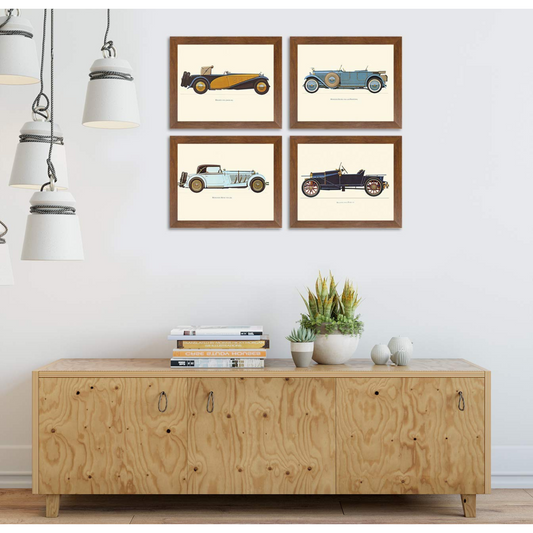 MotorMuse™ Vintage Car Framed Art Set (4)