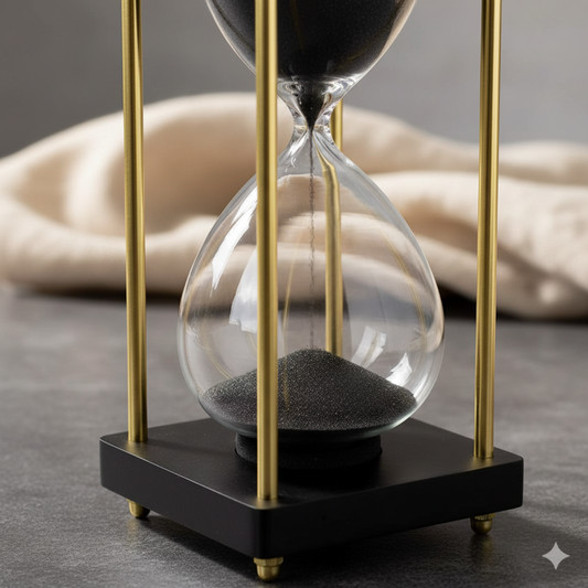TimelessFlow™ Brass & Glass Hourglass Showpiece